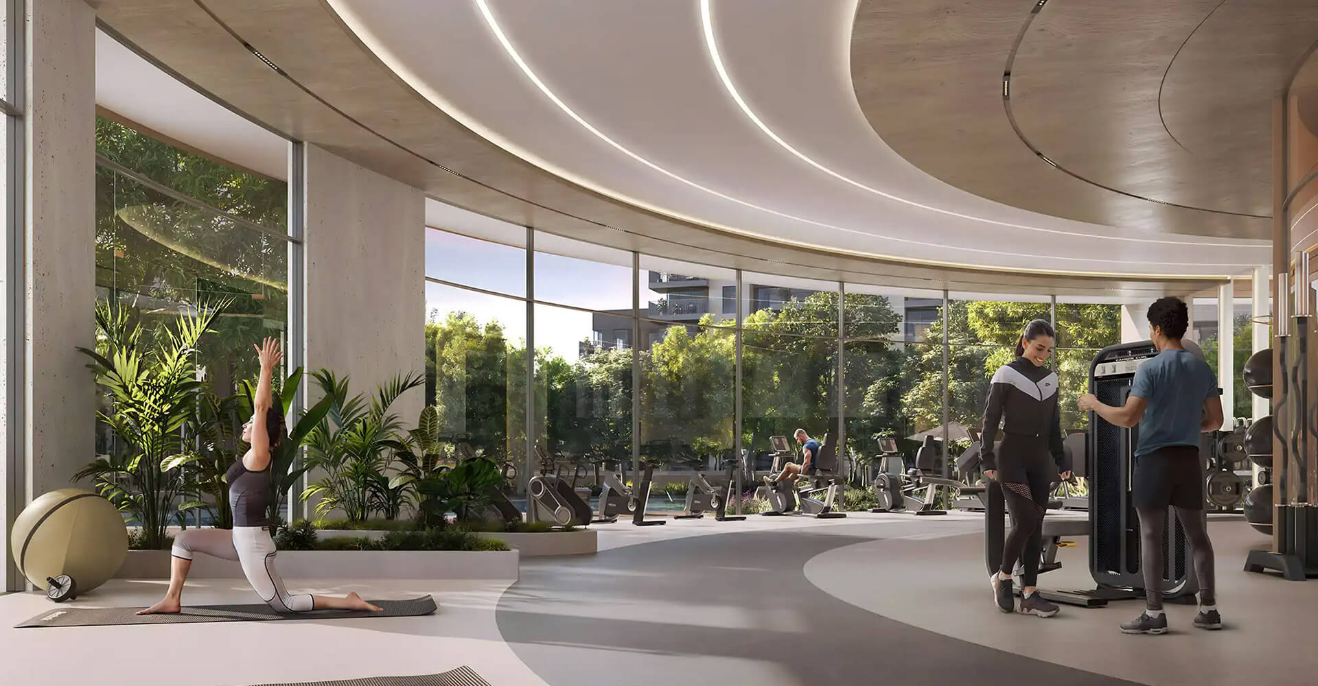Capria at Ghaf Woods offers a variety of facilities for outdoor activities and comfortable living. There are walking trails among the trees, central forest, sports areas, health center, fitness centers, swimming pool, skate park, biking and running trails. The project also includes children’s playgrounds, social and lounge spaces, a school and a mosque. Sustainable community development is supported by a water collection and purification system, as well as a Forest Experience Center that allows residents to interact more with the natural environment.