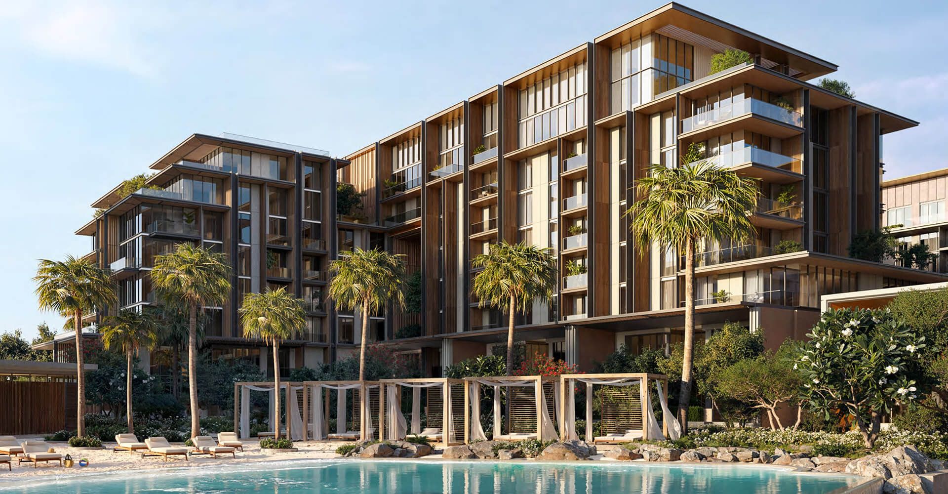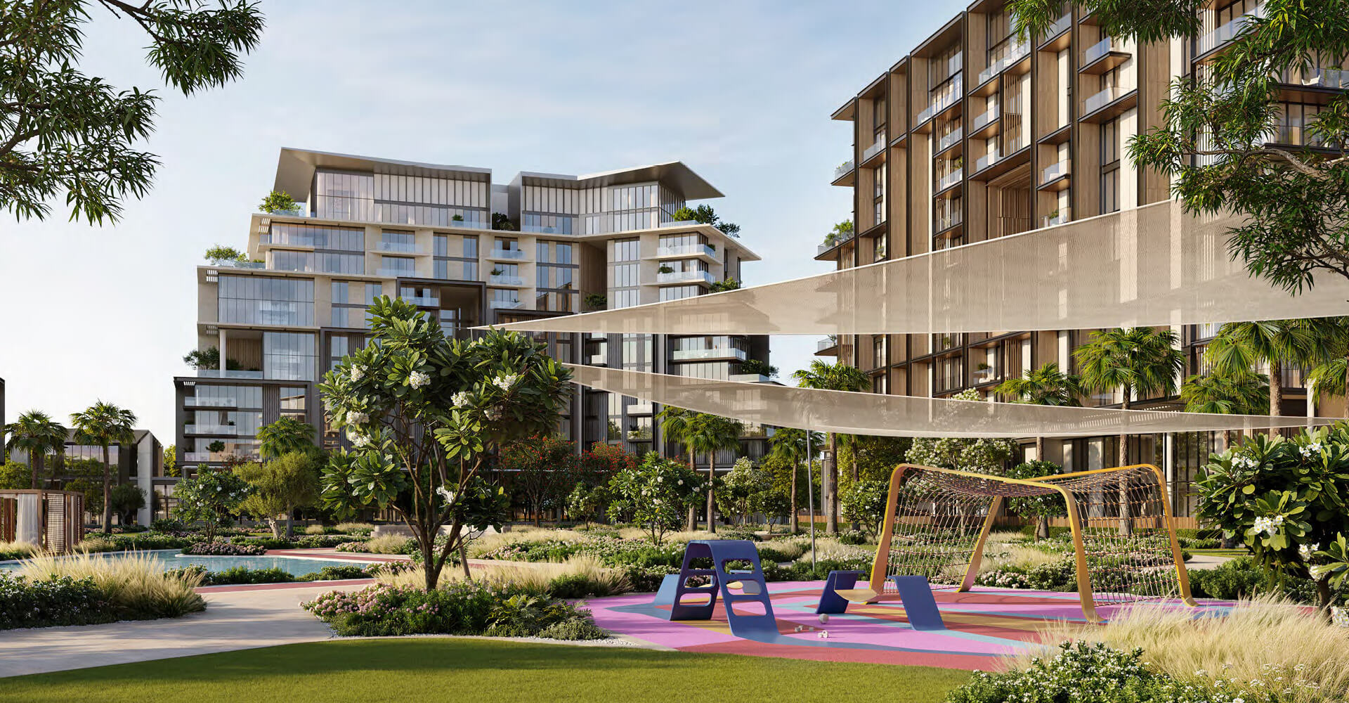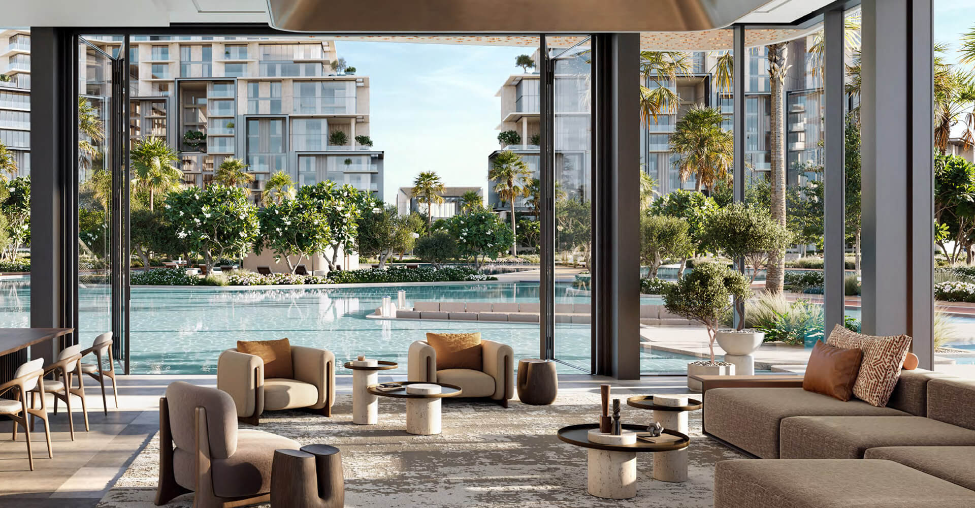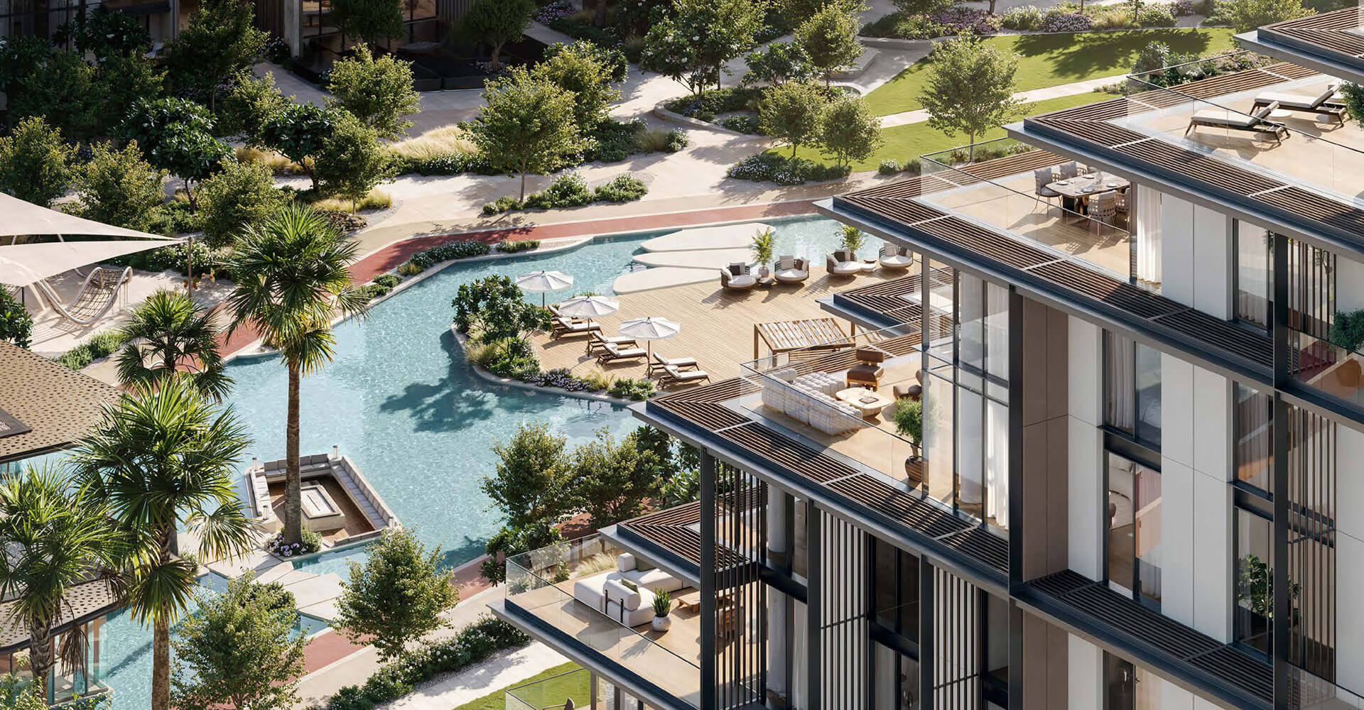 The mid-rise towers hold dual characteristics that combines utility with eye-catching design elements alongside outdoor terraces that offer unobstructed water views to the park below. Beyond being a residential address this space becomes an environment for flourishing growth. The interior spaces use precise attention to details to re-create luxury. These residences demonstrate luxury through their smooth premium materials in kitchens and their spacious bedrooms with room-sized closets. Signature apartments provide double-height rooms that reflect outside light as they deliver uninterrupted water and city views. Four-bedroom duplex units include reserved exterior terraces and direct entrance to the park which gives residents unmatched refined living experiences.
