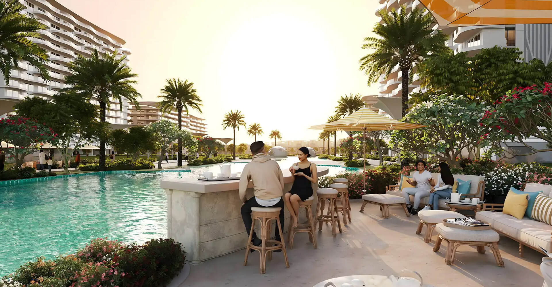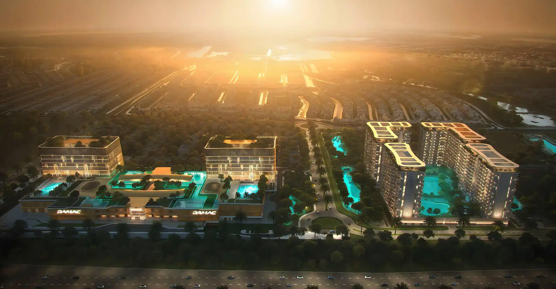 DAMAC Lagoons itself is designed as a large area where residential properties, offices, shops and leisure facilities are combined in one location. Visually, it is inspired by Mediterranean cities: light-coloured facades, green boulevards, water lagoons and cosy walking alleys. DAMAC Lagoons is a place to live, work and relax.