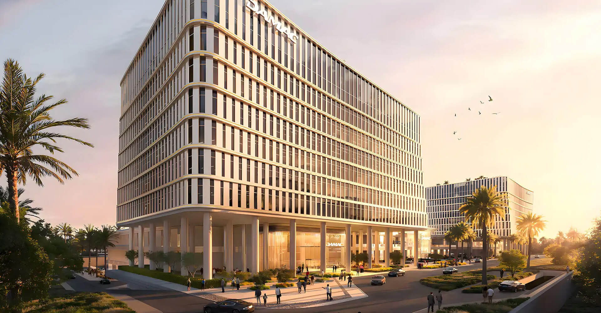 The architecture of the Piazza Roma by DAMAC Properties is built around the idea of a central city square. Two towers form a space similar to a European piazza, with terraces, greenery and separate areas for outdoor meetings. Retail and services are planned for the lower levels, with office floors above. In total, there will be 747 parking spaces across the business centre. In the evening, the public amphitheatre and open-air cinema allow the space to be used not only as a working address, but also as a venue for events, presentations and corporate meetings.