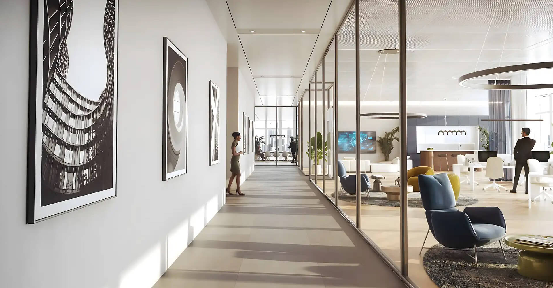The offices at Piazza Roma by DAMAC Properties are designed to be flexible and technologically advanced. The space allows for the creation of both a compact office for a team of several people and a full floor in an open-space format with offices, meeting rooms and break rooms for employees. Several modules can be combined if a company needs a larger space. The smart concept incorporates modern engineering solutions: lighting and climate control, preparation for digital control systems, high-speed internet, and convenient infrastructure for video conferencing.
