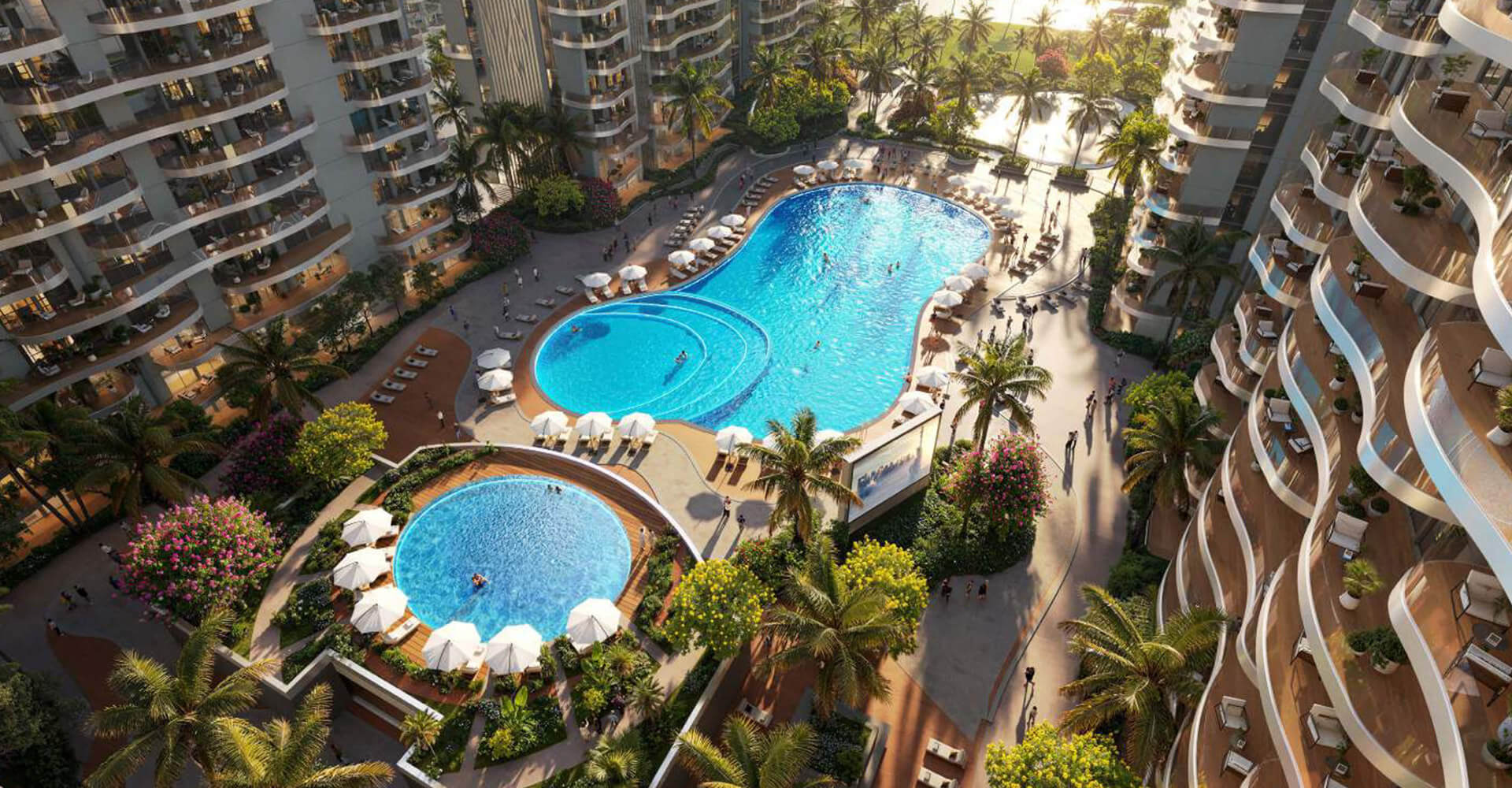 The project features apartments situated within a tranquil environment characterized by serene lagoons, lush tropical landscaping, and expansive green spaces. This carefully curated setting creates a calm and refreshing atmosphere that blends natural surroundings with modern living standards. The residences are designed with a focus on space efficiency, natural light, and visual openness. Thoughtful layouts and scenic views enhance everyday comfort, providing a relaxed and inviting living experience. The architectural approach reflects Mediterranean-inspired design elements, contributing to a refined yet welcoming residential character.