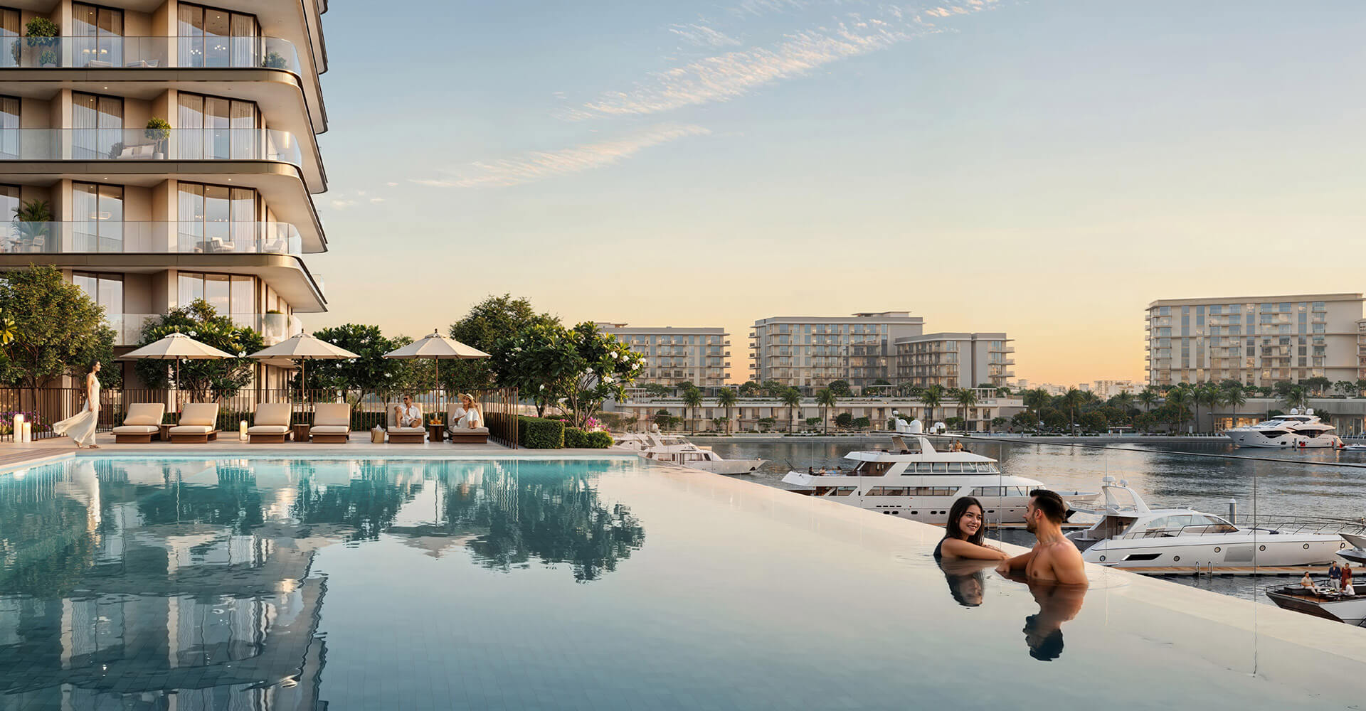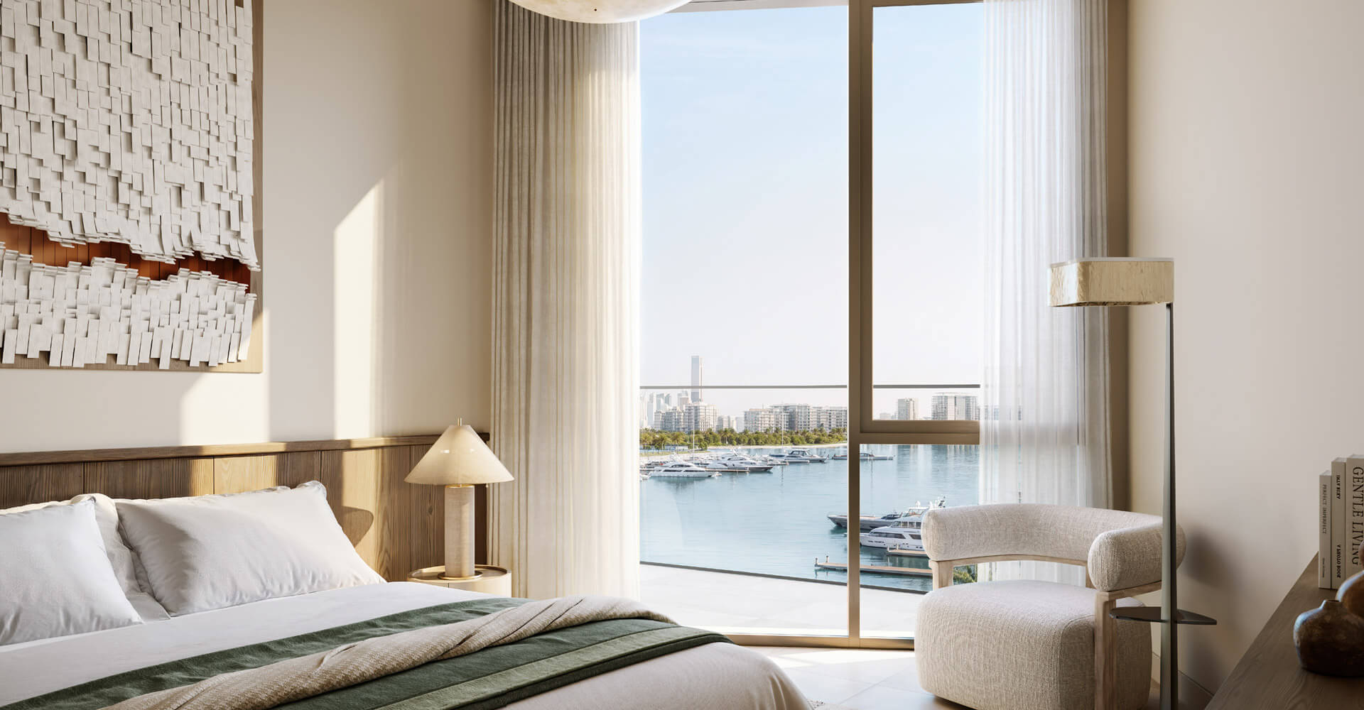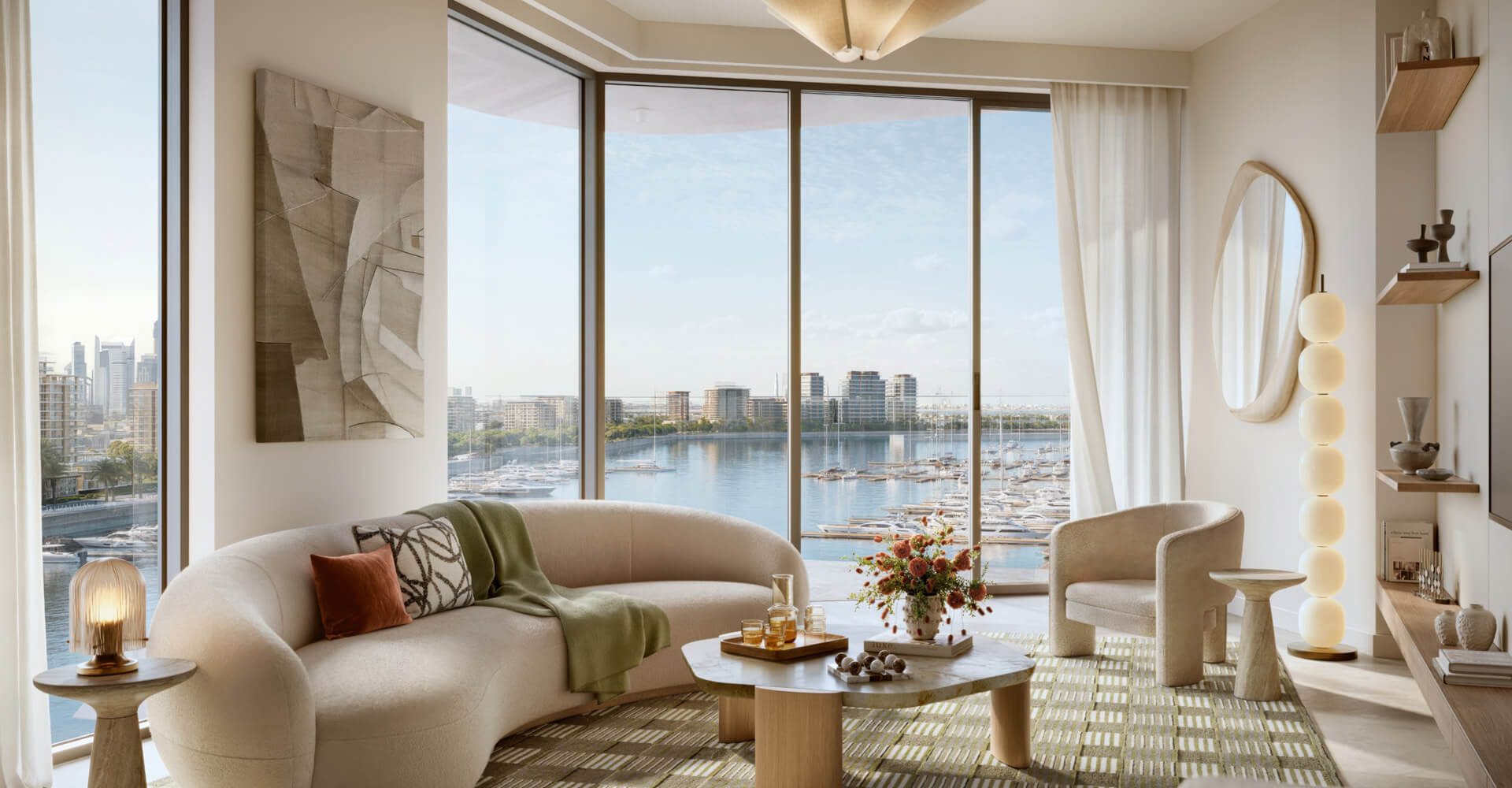 Exquisitely envisioned and designed, Fior stands as a striking architectural statement at Rashid Yachts & Marina. This landmark fuses Dubai’s maritime heritage with contemporary luxury, balancing sophistication and serenity. The façade opens to the marina and skyline, amplifying views, light, and privacy, while every detail reflects elevated design. Each room evokes a sense of refined calm, with neutral color palettes and curated furnishings creating an intimate ambiance of elegance and calm. The very essence of sophisticated lifestyle and expert craftsmanship warms these distinctive homes, giving them a signature design identity.