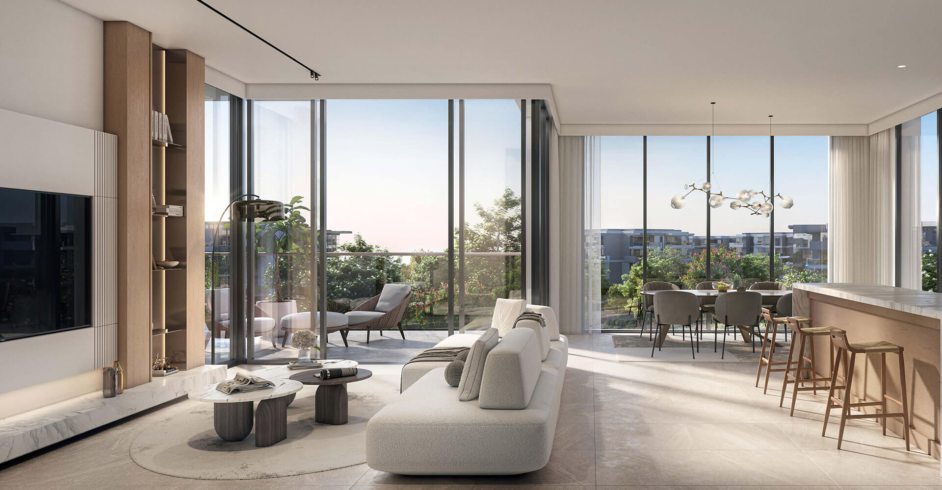 With a central water feature enhancing the harmony between residents and nature, Ghaf Woods epitomizes modern eco-conscious living in an urban setting. This development promises vibrant, nature-centric spaces ideal for those seeking a balanced lifestyle.