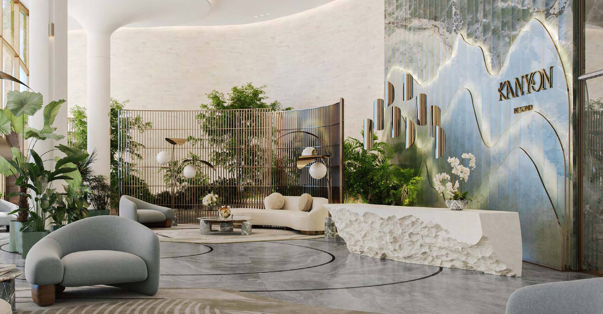 Offering 411 exclusive residences, Kanyon features a collection of 1, 2, and 3-bedroom apartments, including options with maid’s rooms, with sizes ranging from 798 sq. ft. to over 2,400 sq. ft. Residences are thoughtfully distributed across G + 3 podiums, 1 full amenities floor, and 47 residential levels, crowned by a rooftop spa, sky pool, and exclusive bar. The building is anchored by an 8-metre triple-height lobby, setting the tone for the elegance and grandeur that permeates every level.
