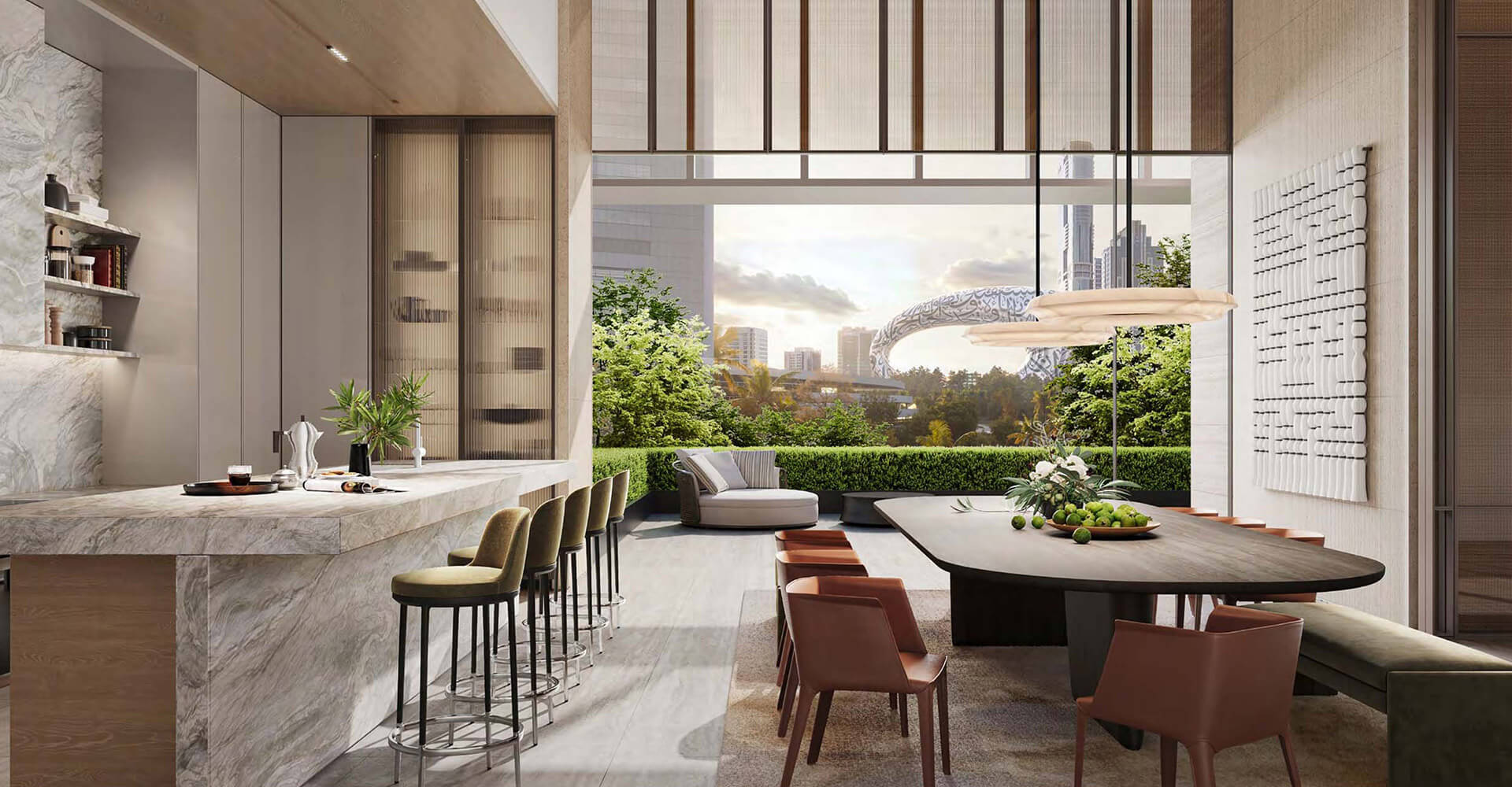 Jumeirah Residences Emirates Towers presents a world-class selection of amenities. At the heart of the experience is a dramatic adults-only infinity pool and lounge, suspended above the city with breathtaking panoramic views. A dedicated yoga and spinning studio, overlooking the Museum of the Future, offers an inspiring setting for mindful movement. The wellness club includes spa suites, saunas, a fully equipped gym, and a private nail studio, with an exclusive fitness floor reserved for select residents. For leisure and recreation, residents can enjoy a premium paddle court, a safe and engaging toddlers’ club, and beautifully landscaped sky terraces with lounge seating, water features, and lush greenery. Social gatherings are elevated with private dining areas, the option of a personal chef, and a multi-purpose event space.