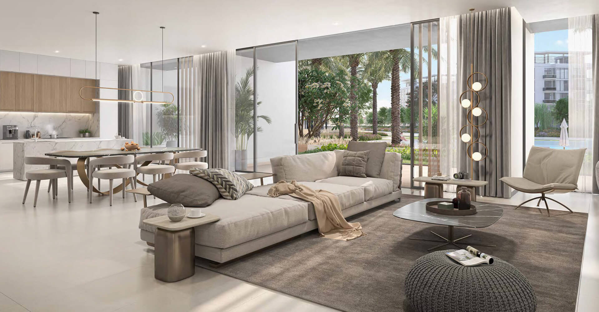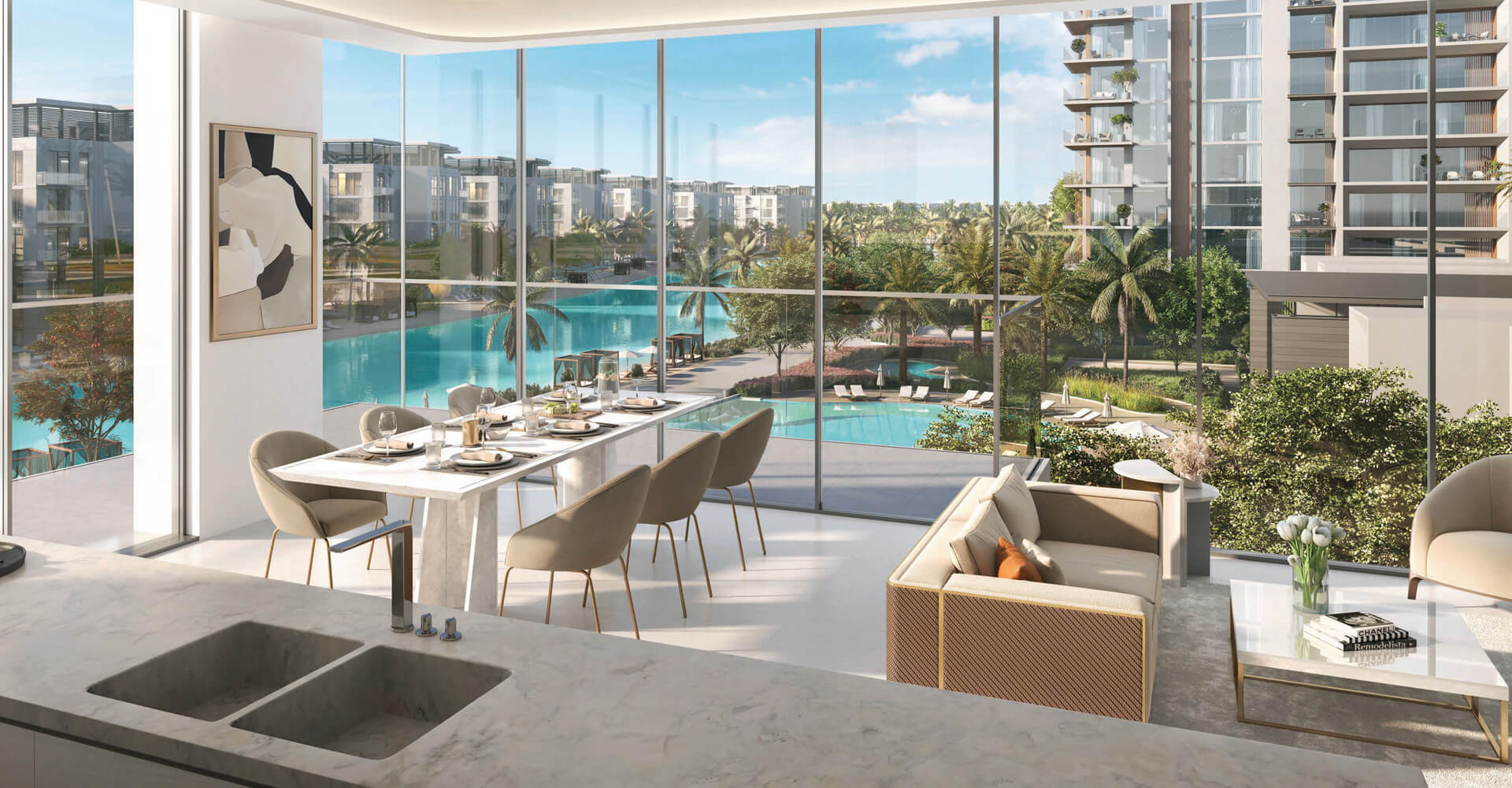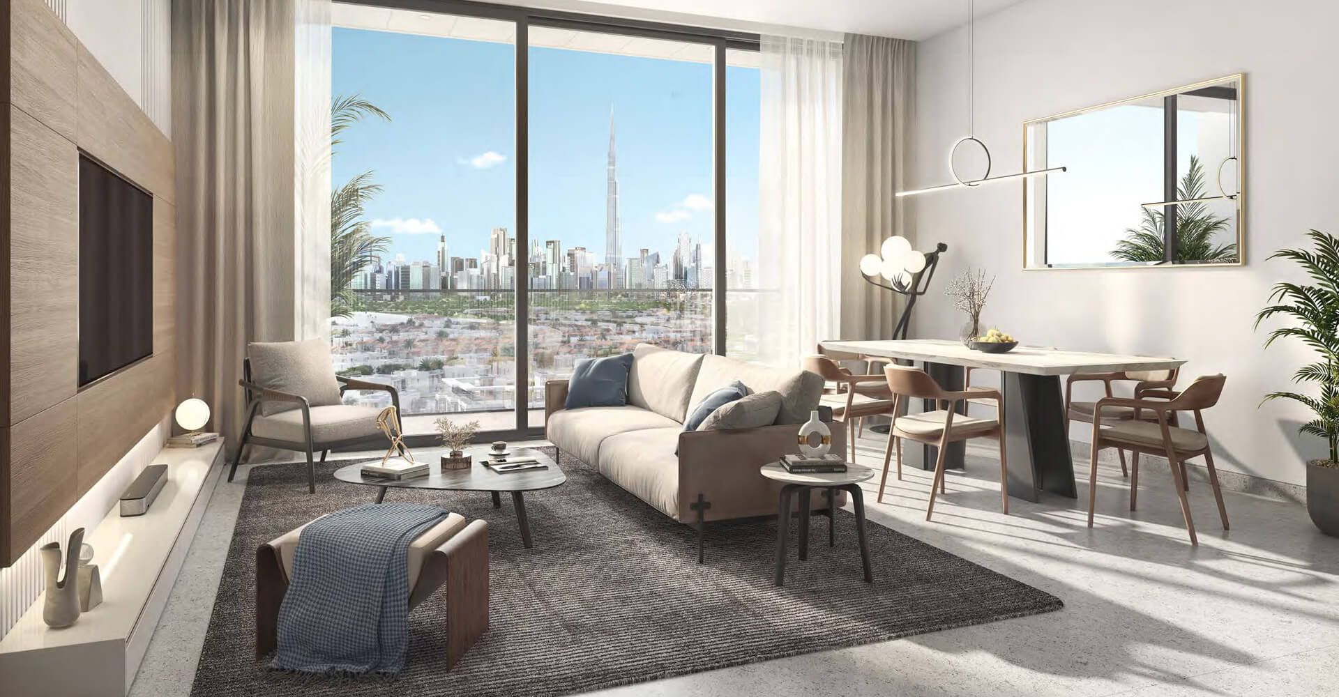 The exquisite lagoon facing apartments and the stunning lagoon villas offer the ultimate luxury with District One’s finest views. Residents of the four bedroom apartments can soak up the sparkling skyline while relaxing in an oversized soaking tub. Lavish gatherings for family and friends can be hosted in this grand and sprawling layout, where the finest fixtures and finishes catch the eye.
