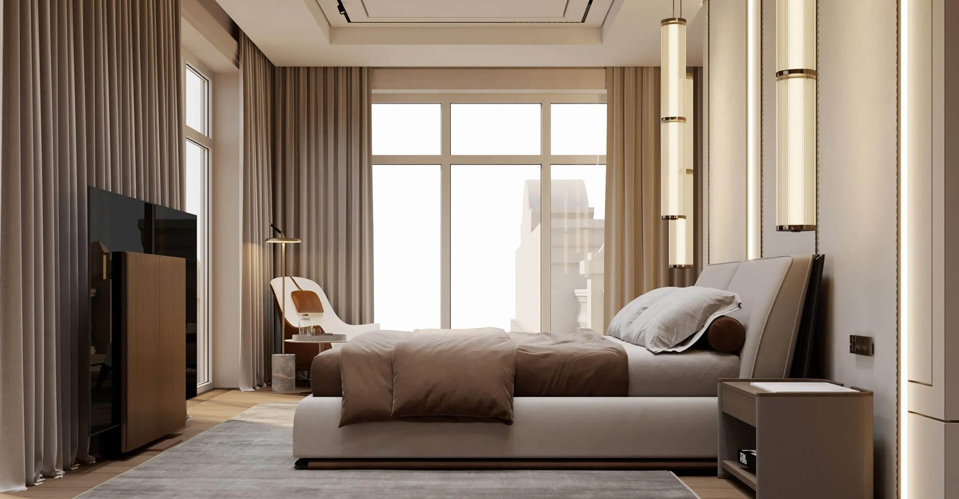 Raffles Residences & Penthouses The Palm Dubai features spacious and elegantly designed residences, ranging from one to four bedrooms. The apartments are fully furnished and equipped with state-of-the-art appliances and facilities. Ensuring that residents have everything they need for a comfortable and convenient stay.