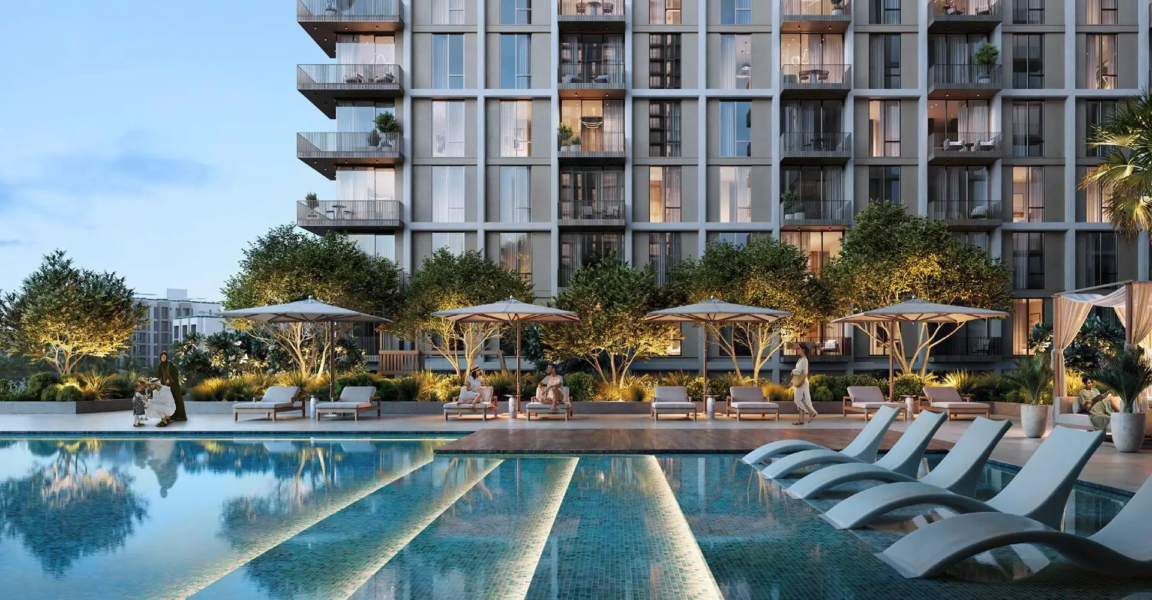 Discover your dream apartments in AEON by Emaar modern properties showcasing design excellence. Architectural elements and textures harmonize with a soft colour palette, enhancing surrounding views and creating an ideal setting for a private urban retreat.