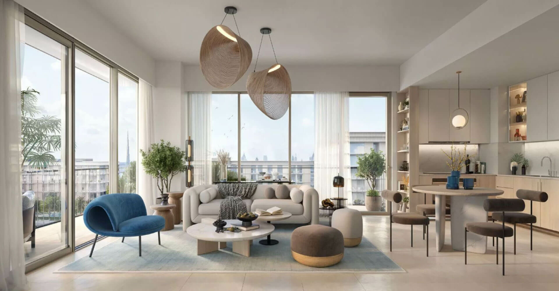 - Residents luxuriate in expansive vistas encompassing lush greenery, sparkling waters, the iconic Burj Khalifa, and the Arabian Sea.