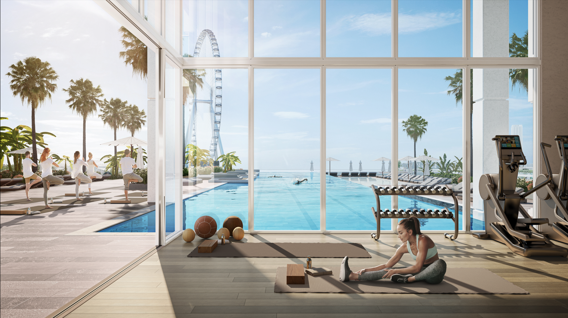Bluewaters Bay amenities are world-class in each term. On the first floor, you can play tennis, work out in the well-appointed fitness center, or jump into the infinity pool with views of the beach and the skyline on one side and Bluewaters Island and Ain Dubai on the other.