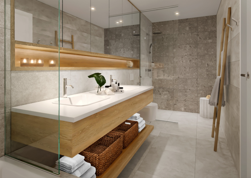 The promenade joins a lush linear park on the ground floor, which will be a pleasant green space for locals and guests to enjoy. Schools, healthcare centers, restaurants, kids’ play areas, shopping, retail, and much more are just a few steps away.