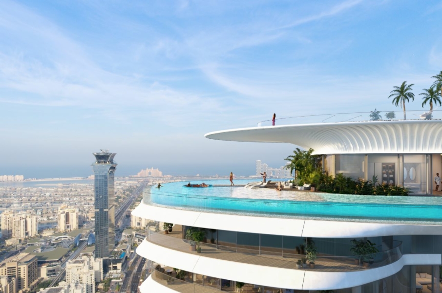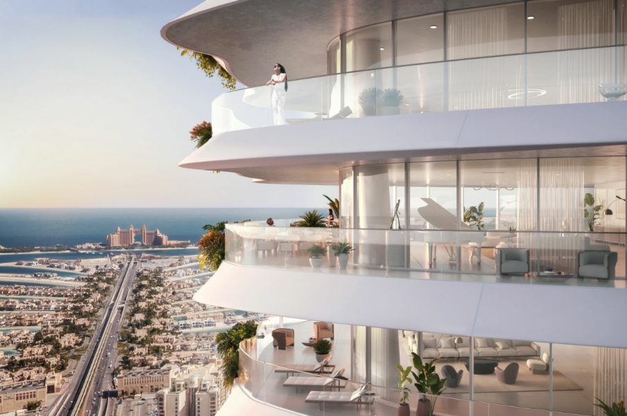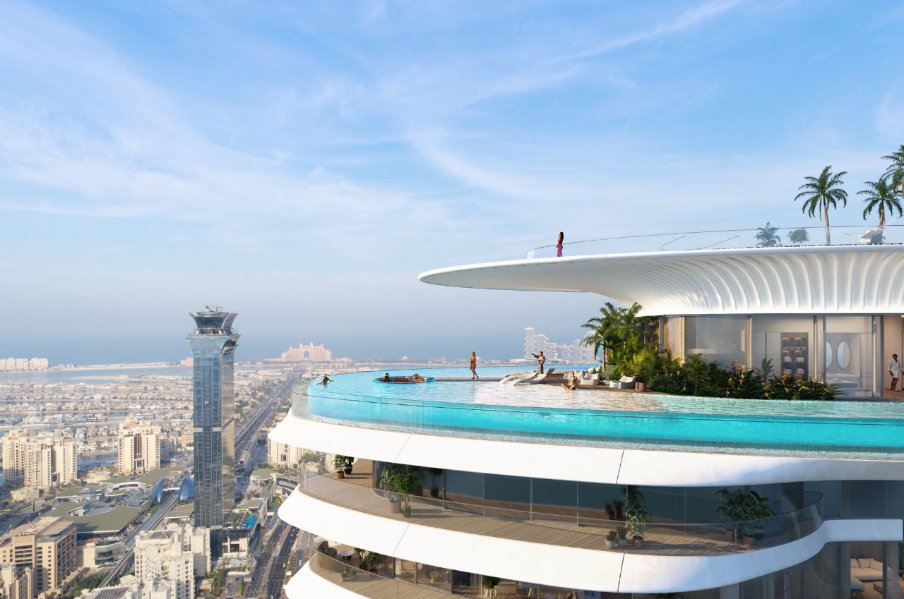 Extremely spacious interiors lead out onto vast terraces embellished with lush greenery and unique private pools where residents can admire breathtaking views of the Burj Al Arab, Burj Khalifa, Palm Jumeirah, and Ain Dubai. Each exclusive apartment enjoys either 180- or 360-degree panoramic views and a Surreal Rooftop Pool with 360° views of the city, The highest point in all of Palm Jumeirah.