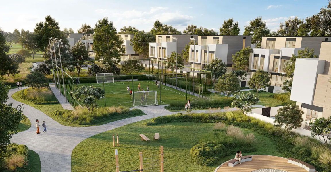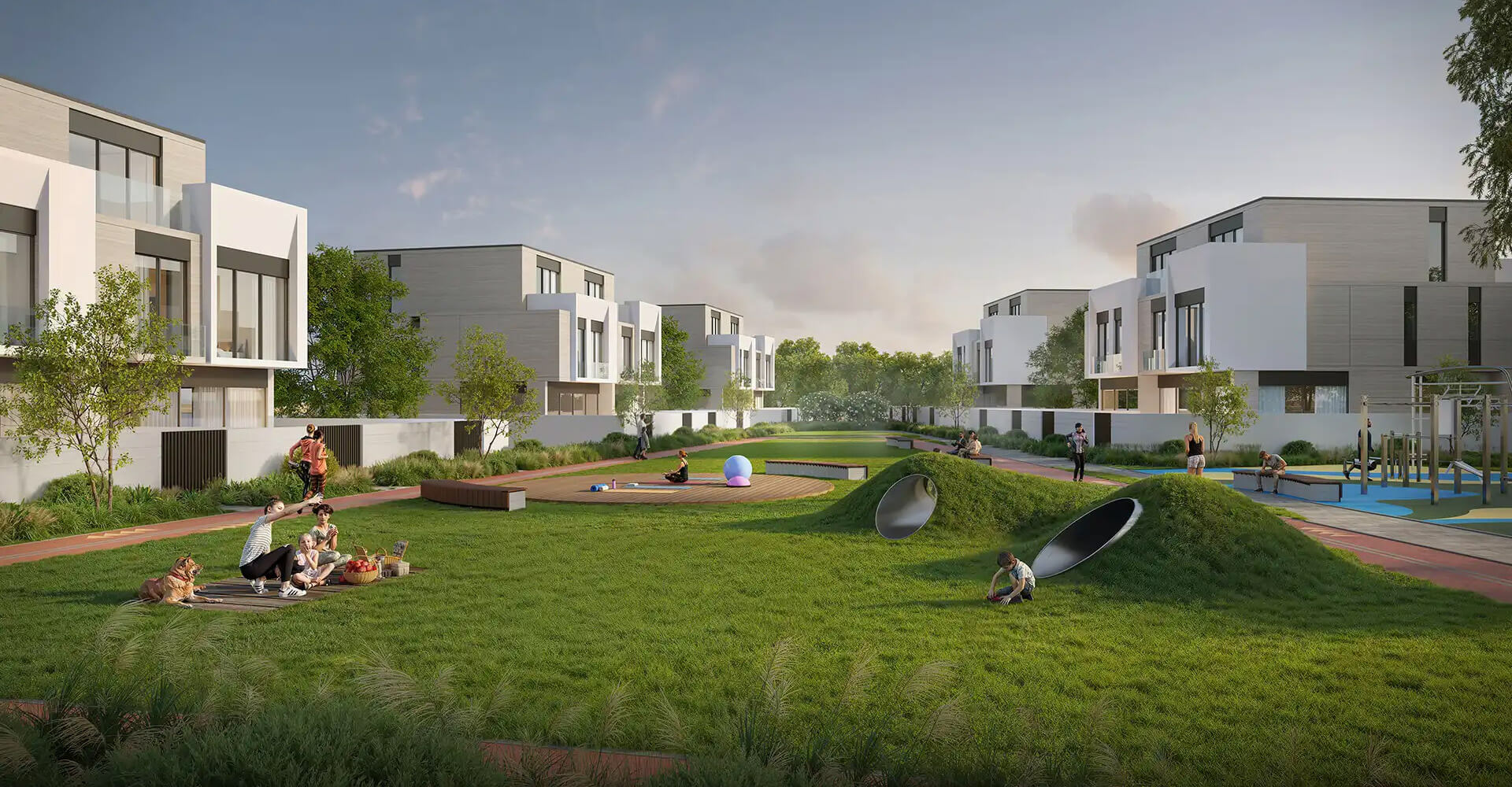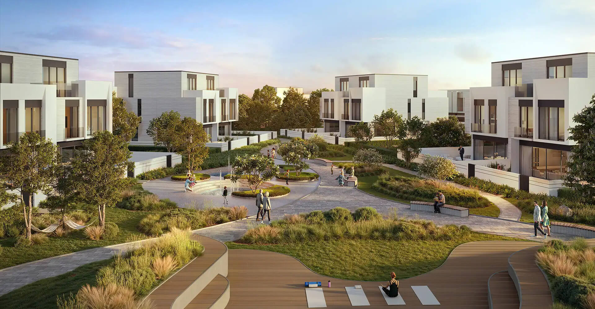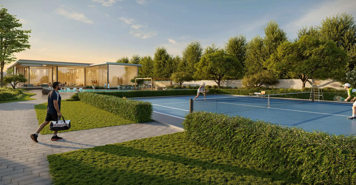 The premium properties at DG Villas at Jumeirah Golf Estates are complemented by relevant amenities. At the center of the community is a clubhouse with a restaurant, café, gym and swimming pool. For sports enthusiasts, there is a tennis and basketball courts, a mini soccer field, and outdoor fitness areas. For children, there are playgrounds, a splash park and special spaces for riding bikes and scooters. The community also features a botanical garden, meditation areas and lawns with hanging hammocks. There are jogging and walking paths along the development.