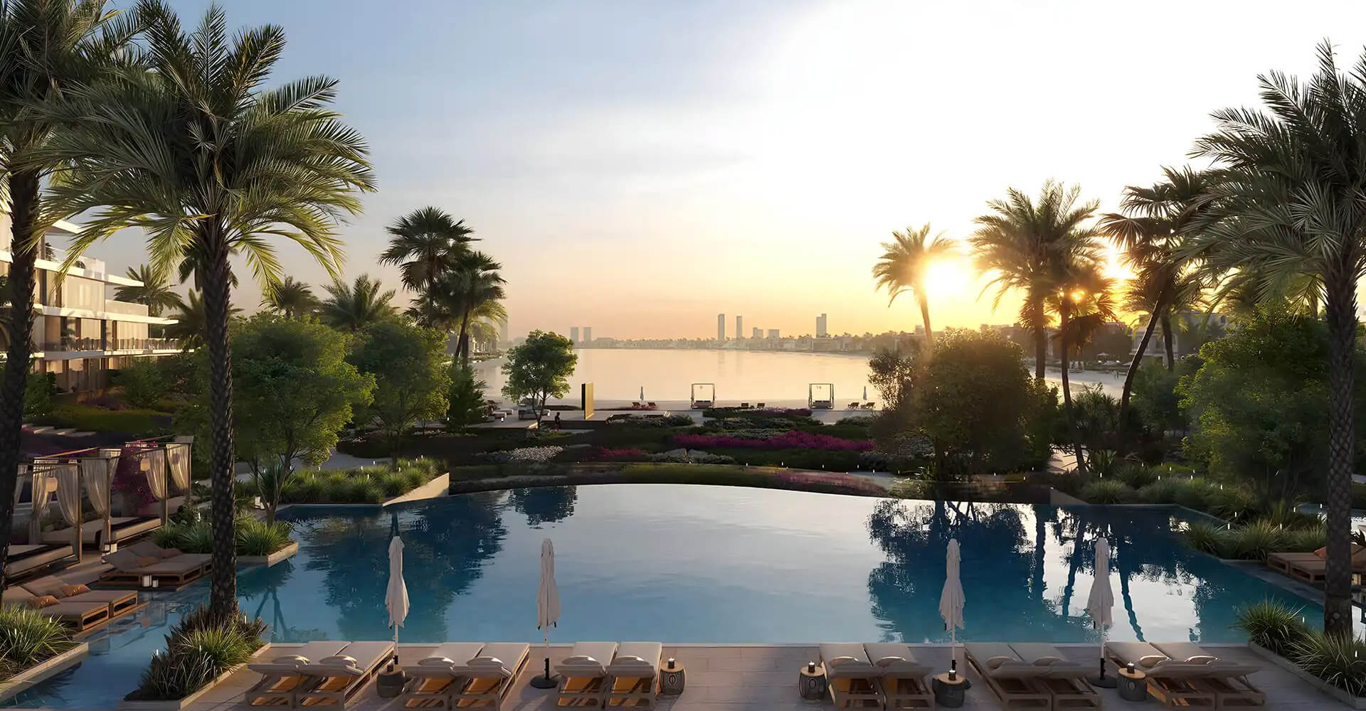 The infrastructure of Palm Central Private Residences by Nakheel on Palm Jebel Ali covers the main scenarios of leisure and active lifestyle. For sports — padel court, outdoor fitness zone, yoga spaces, gym with fitness studio and beach volleyball. For relaxing by the water — a landscaped infinity pool with Jacuzzi, beach terrace loungers, beach cinema and lounge. For work — outdoor co-working area with panoramic views. For families — outdoor playground and indoor children’s playroom. For meetings, a multi-purpose room, spacious lobby lounge and event space. Residents of properties at Palm Central Private Residences by Nakheel also have access to private garages and direct access to their own private beach.