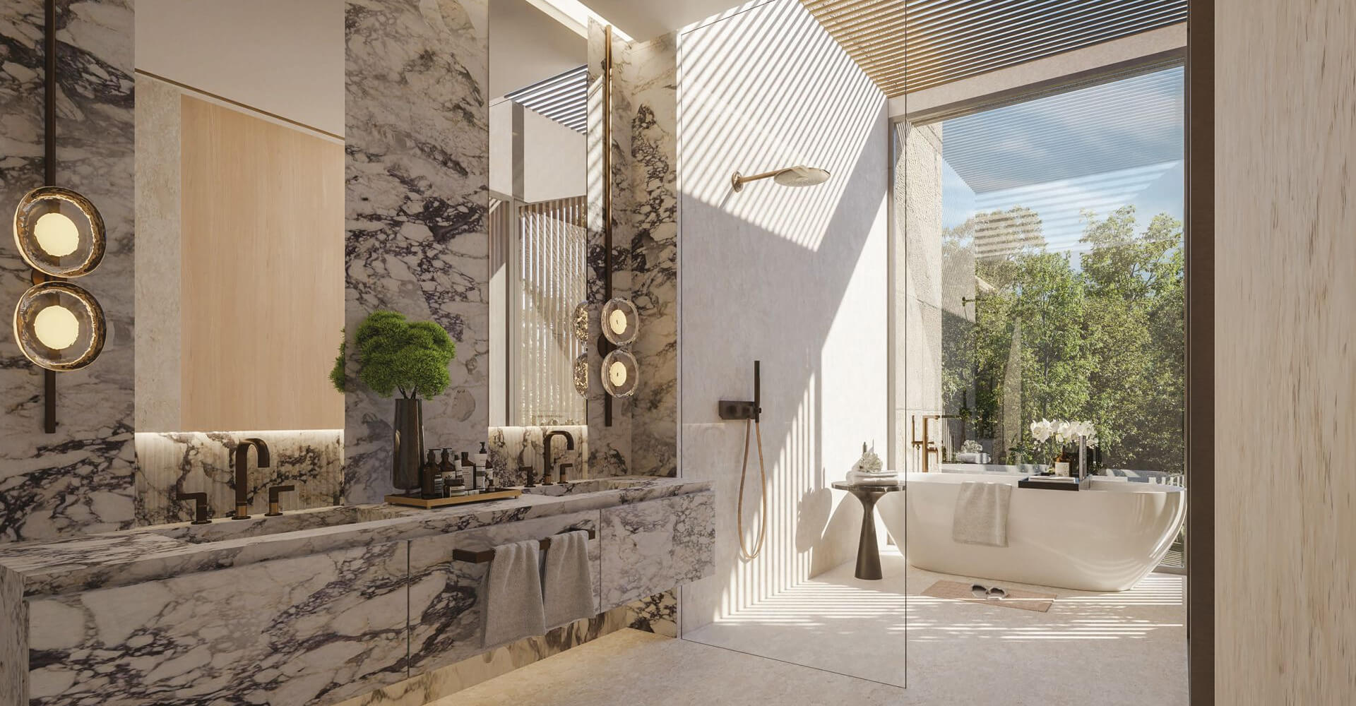 Every element of design and architecture has been meticulously crafted to achieve a harmonious fusion of aesthetics and functionality. The visionary team of architects has ingeniously utilized the vast expanse of the Tilal Al Ghaf landscape, creating an enchanting environment that seamlessly integrates with nature. The exteriors of the residences exude grandeur and elegance. While the interiors showcase meticulous attention to detail, embodying the essence of modern luxury.