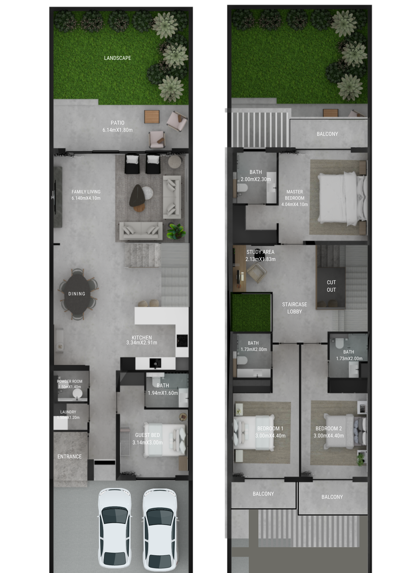 Zimaya – 3 BR + Guestroom Room Luxurious Designer Townhouses in Al Furjan. Designed by SCI interior. Located in Al Furjan, next to Ibn Batuta Mall. One of the closest communities to SZR with metro connectivity and around 10 minutes to Dubai Marina and JBR.Design Studio. Ground floor comes with an Elegant dining and living room of this homely residence making it a modern style living. Spacious and modern kitchen, with fully equipped kitchen appliances from Teka. The Townhouse is equipped with Voice Controllable Smart Home Automation System and a smart lock entry door.