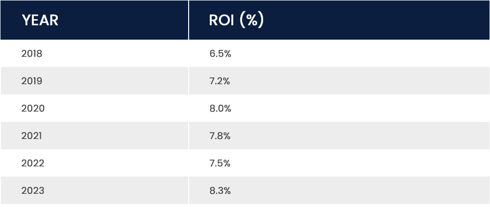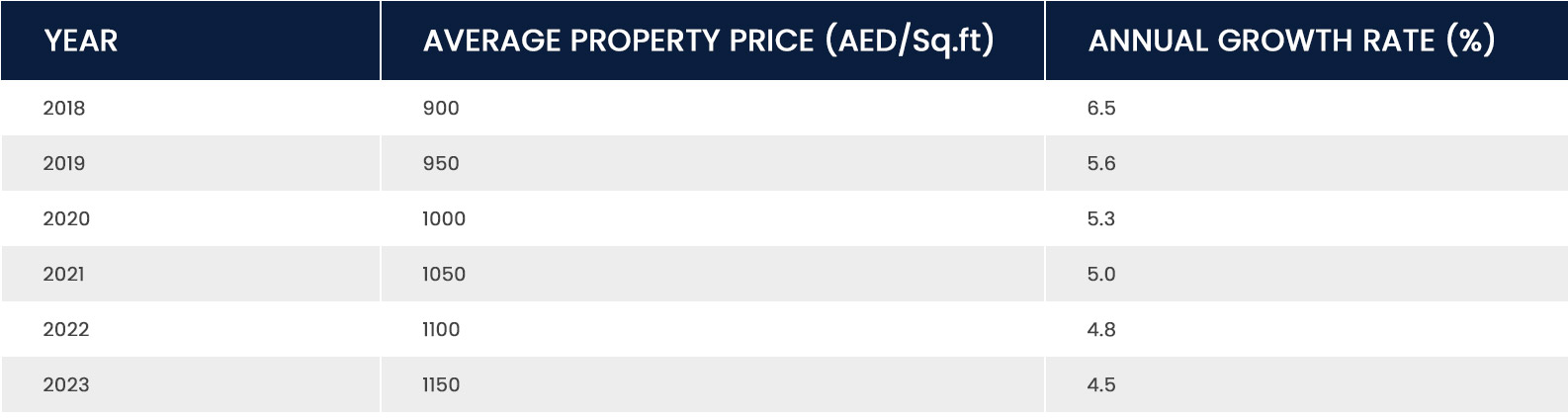 Al Furjan has demonstrated consistent market resilience and stability, with property values steadily appreciating over time. The table below outlines the historical and projected return on investment (ROI) for properties in Al Furjan: